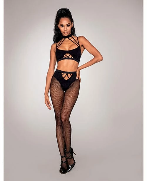Dreamgirl International Strappy Bralette & Pantyhose Bodystocking Set Black O-s Lingerie