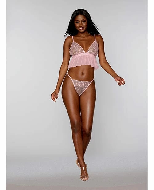 Dreamgirl International Valentine Heart Embroidery Bra & Panty Candy Pink O-s Lingerie