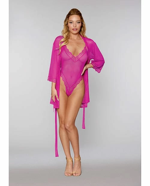 Dreamgirl International Valentine Stretch Mesh Teddy & Robe Azalea