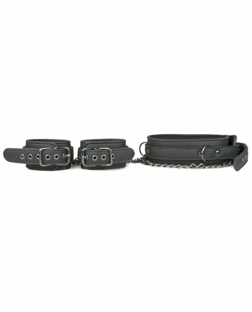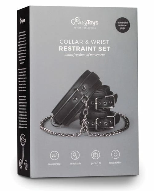 EDC Easy Toys Faux Leather Collar With Handcuffs – Black
