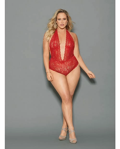 Euphoria Halter Tie Open Crotch & Butt Teddy Red Qn