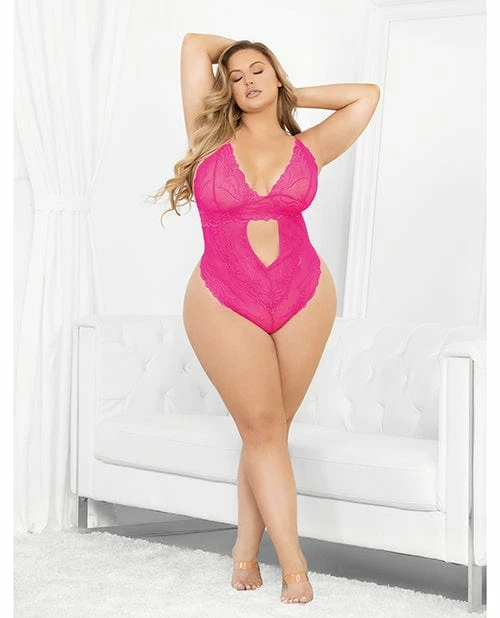 Escante Neons Keyhole Front Teddy With Tanga Back Neon Pink Lingerie