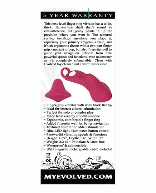 This next-level finger ring vibrator has a wide, thick flat-surface shaft that’s round in circumference, but gently points to tip for precision where you want it. The textured surface tantalizes anywhere you place it.