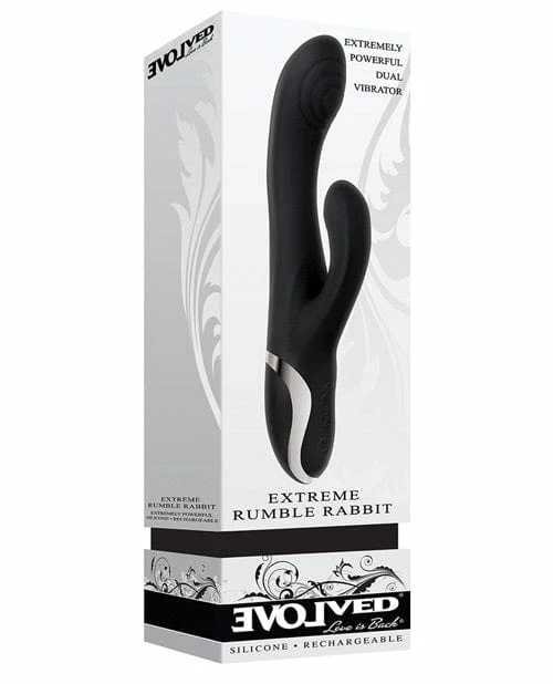 Evolved Novelties Vibrators Evolved Extreme Rumble Rabbit Dual Stim Rechargeable – Black