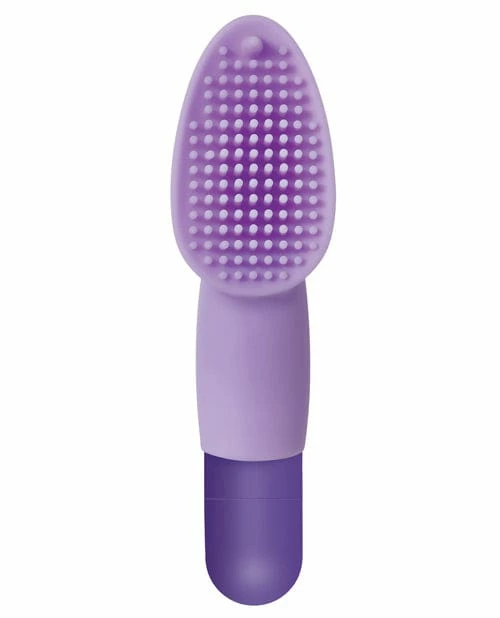 Fingerific Bullet Vibrator with Clitoral Stimulating Nubs from Evolved Novelties. Slip the powerful bullet inside the sleeve and enjoy tantalizing clitoral stimulation that will put you over the edge! Rechargeable clitoral stimulator. Slips over your finger with ease. Powered by the All Power Bullet Vibrator that slides into place. One large vibrating nub surrounded by over 100 small nubs. 1 powerful speed with easy 1 button control. Fully waterproof and submersible, this potent little companion can transform bath or shower time into a memorable experience. Material: silicone Height: 3.5 inches, depth 1 inch, width 1.25 inches. Fully rechargeable, USB cable included.
