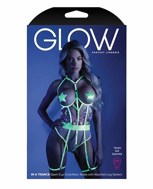 Fantasy Lingerie Glow Black Light Embroidered Cupless Garter Teddy (pasties Not Included) Neon Chartreuse