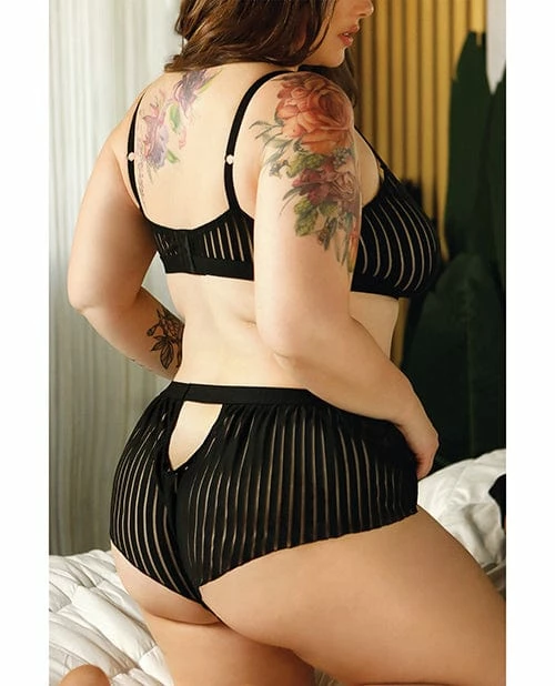 Vixen Striped Mesh Bralette & Shorties Black Qn