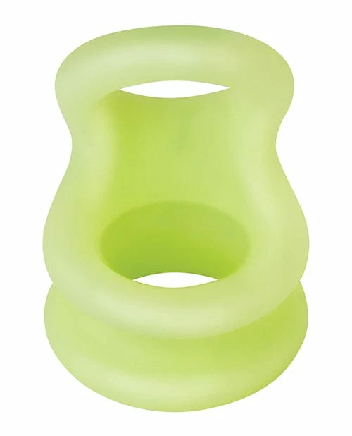 Forto Power & Pleasure. Explore New Thrills. F-20 Glow in the Dark 100% Liquid Silicone Cock and Ball Double Ring. Soft and Stretchy. Stretches up to 2x its size. Cock Ring inside Diameter is .9 inches. Ball Ring inside diameter is 1.1 inches. Compatible with water-based Lubricants only.