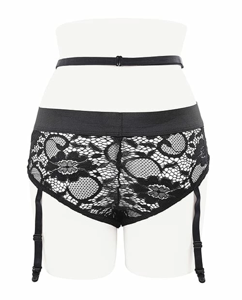 Strap in for dual-motor playtime! This wavy-shaft vibe is large and in charge, putting you in the driver’s seat of a big silicone shaft with delicious textures and two 10-speed motors – one at the tip and one at the base. The vibe slips inside the pocket of comfy lacy booty shorts for a secure fit, allowing you to focus on fun! Use the remote control for hands free or partner play and take your strap-on experience into the bath or shower as this toy is completely water submersible. Rechargeable, easy to clean and latex free!