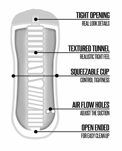 Rinse and repeat. Add lube, stroke, rinse and repeat. Realistic look and feel. Reusable and long lasting stroker. Tight textured tunnel. Super stretchy and waterproof. Use sleeve independently or in cup. Easy to use and easy to clean. Phthalate free and body safe.