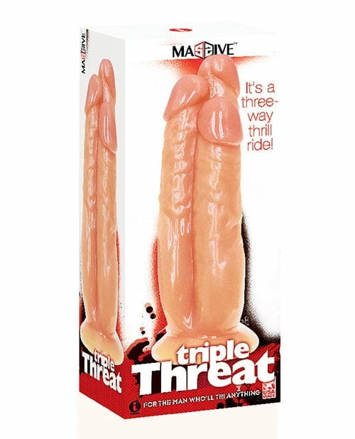 Triple Header 3 Cock Dildo from Icon Brands. Massive triple. It’s a three way thrill ride. For the man who will try anything. Back to back triplets from Massive. The twisted minds that brought you the two fisted grip now go one better. Try them you will like them. Made from body safe materials PVC. Made in the USA. Color – Beige