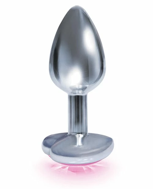 Sleek chrome metallic body and Glitzy heart shaped bejeweled base on the anal plug perfect for beginners, designed and sized for easy insertion.