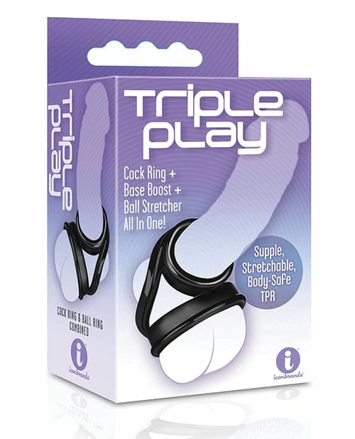 Cock ring, base boost and ball stretcher all in one! An ingenious triple c-ring that wraps around your length, balls and base for maximum support and hardness; and a sling-ring that s a ball stretcher and c-ring all in one. A Material: TPE Dimension: 4.625x3x1.5inches