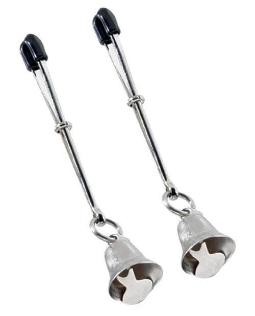 Now when you are off to erotic adventures, you can really be there with bells on! Slim, sleek, and exotic, these Nipple Clamps with bells keep up the intensity without the weight of heavier clamps. Choose your pressure from light to moderate. Whether you are a novice or even experienced, you will love these rubber tipped tweezer style clamps!