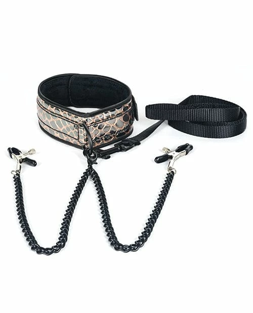 Love the idea of feeling owned by your significant other? Let yourself be lead by your dominant partner using Collars & Leashes like Spartacus Faux Leather Collar & Leash with Black Nipple Clamps by Spartacus.