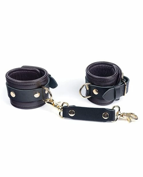 Kink & BDSM Spartacus Wrist Restraints – Brown Leather With Gold Accent Hardware
