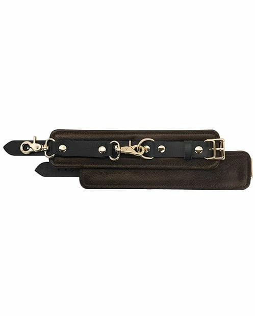 Spartacus Wrist Restraints – Brown Leather with Gold Accent Hardware