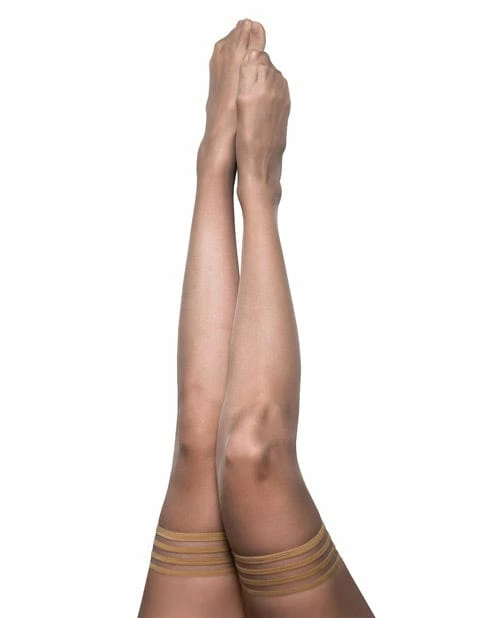 Champagne thigh-high tights with a non-slip grip. From Kix’ies.