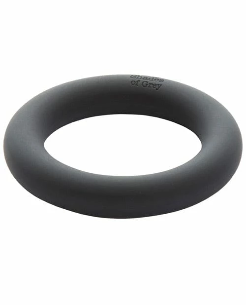 Silicone Fifty Shades of Grey love ring. Inhibits blood flow, which may help make his erection larger and harder, for longer. Made from strong and stretchy silicone for a luxurious feel. Reusable for pleasure again and again. Portably sized for trips away.