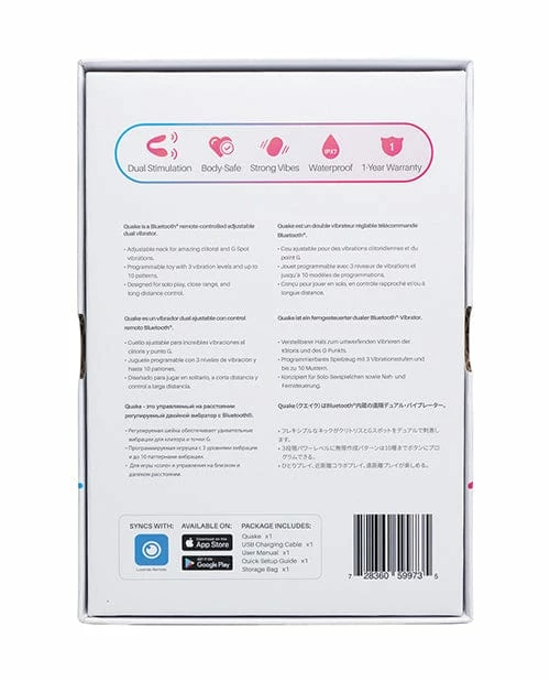 Quake is an adjustable dual vibrator which can be customized to a wide range of vibration levels. Our app allows you to choose a power level which matches your individual needs. Program 3 Steady Levels Up to 10 Patterns.