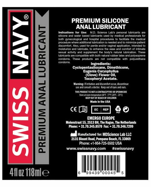 M.D. Science Lab Swiss Navy Anal Lube – 4 Oz.