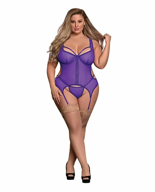 Sheer Mesh Merry Widow & Crotchless G-string Purple Qn