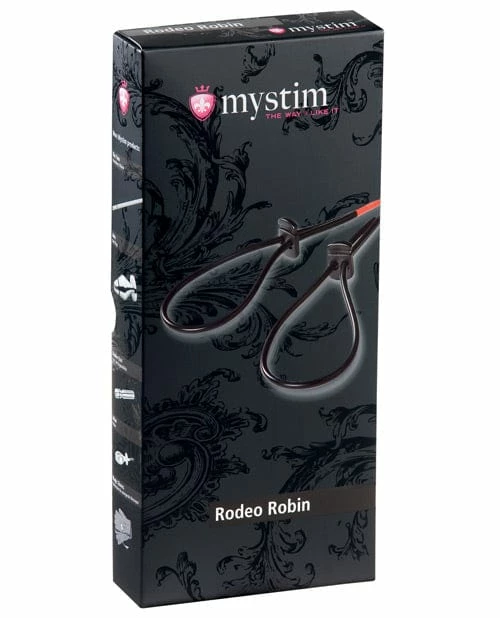 Mystim Rodeo Robin Penis and Testicle Strap Set. This strap set is perfectly suitable for an especially intense stimulation and provokes a tingly, sensuous pleasure, which can either lead you quickly to the most unexpected heights, or can be enjoyed for hours. Thanks to the fact that the straps are adjustable they can comfortably be sheathed, and afterwards adapted so that they are tight to the glans respectively root of penis or testicles. Please take care to always connect the strap with the black wire to the area which is closer to the body meaning if you connect the glans and the root of the penis you connect the first with the red wire and the last with the black one – This will make the stimulation even more intense. Includes: 1 glans- or penis-strap, 1 testicle strap, 1 connecting wire. You will require an e-stim device – like the Mystim Tension Lover (MY46000), or the Mystim Pure Vibes (MY46010) – to activate the poles. One Year Warranty.