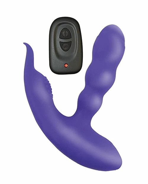 Anal-ese COLLECTION REMOTE CONTROL P-SPOT STIMULATOR-BLACK. Dual motors.11 Vibration functions. Push button or remote control. Includes free drawstring bag Waterproof Materials: Silicone, ABS Base Size: Overall Length: 5.25″, Width: 5.5″, Circumference: 3.75″, Insertable length: 3.75″ Rechargeable Charging Time: 60 mins. Working Time: 120 mins.
