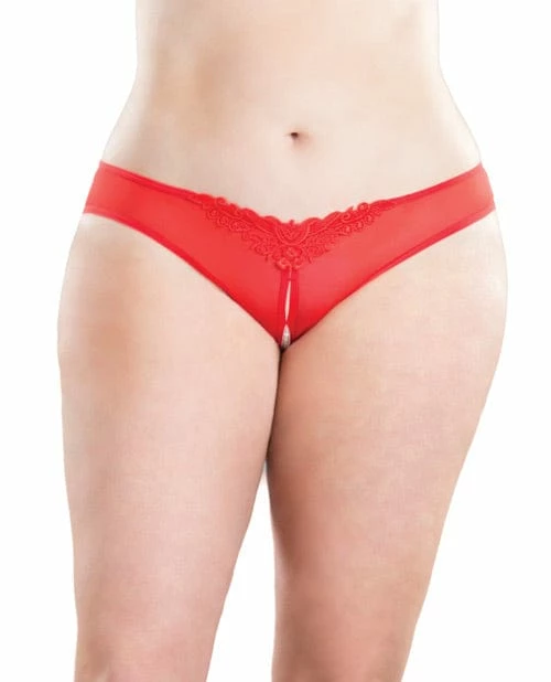 The crotchless pearl thong features an open crotch, lace front detail and pearl strand. Fabric: 90% Polyester /10% Spandex. From Oh La La Cheri.