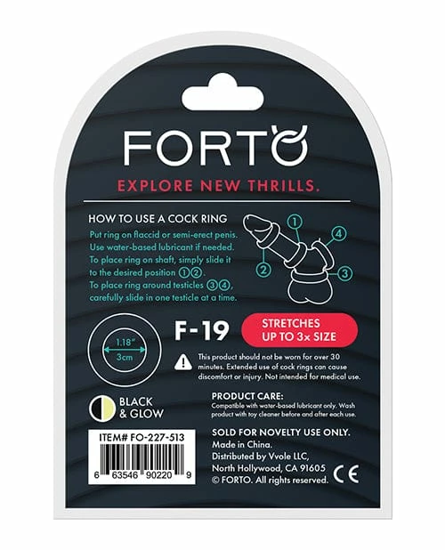 Penis Toys Forto F-19 Two Tone Liquid Silicone Cock Ring – Black-Glow In The Dark