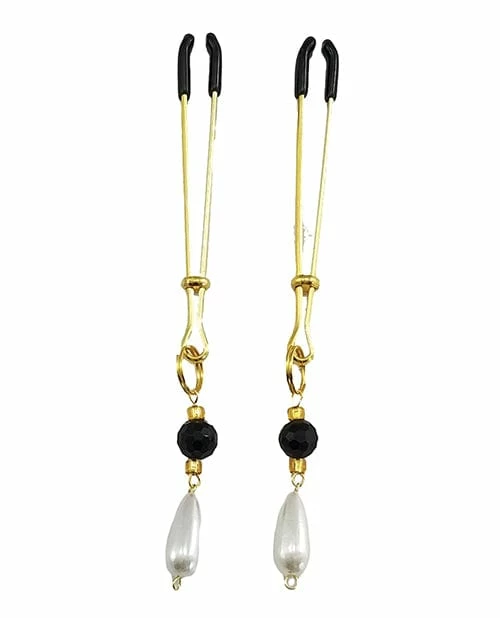 Phs International Kink & BDSM Bijoux De Nip Tweezer Nipple Clamp W-black & Gold Beads W-pearl – Gold