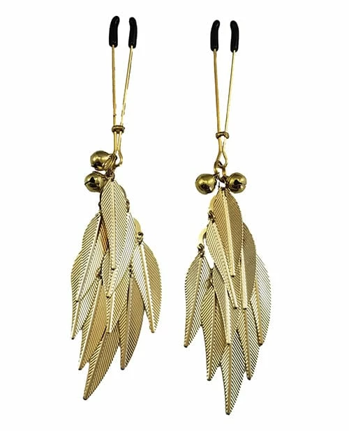 Phs International Kink & BDSM Bijoux De Nip Tweezer Nipple Clamp W-metal Feathers – Gold