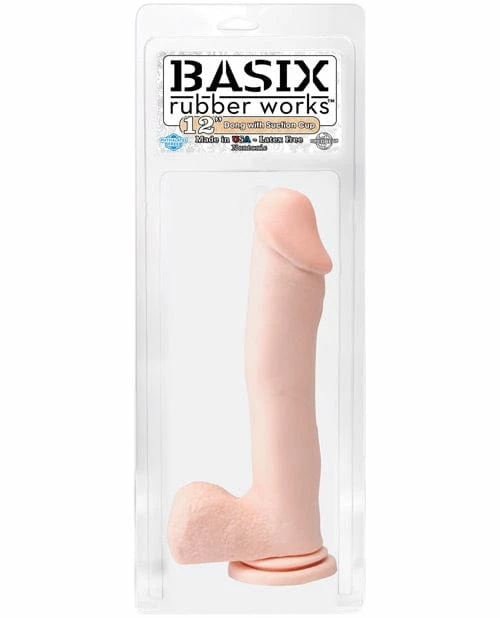 The Basix Rubber Works 12″ Suction Cup Dong from Pipedream puts a new twist on a classic product to bring you the best possible rubber made in the USA. Pipedream’s American-made rubber is 100% phthalates and latex-free, environmentally safe and hypoallergenic. Overall length: 12″. Flesh.