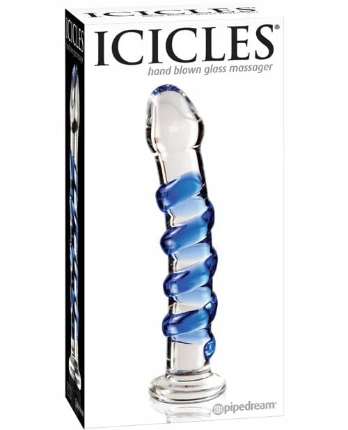Pipedream Products Dildos Icicles No. 5 Hand Blown Glass Massager – Clear With Blue Swirls