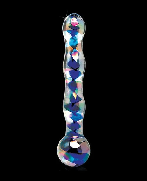 Pipedream Products Dildos Icicles No. 8 Hand Blown Glass Massager – Clear With Inside Blue Swirls