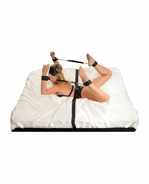 Tie me up! Tie me down! The Fetish Fantasy Series Bondage Belt Restraint System turns your bedroom into the ultimate erotic playground. System comes complete with an adjustable bondage waist belt that fits up to size 40″, an adjustable under-mattress restraint strap that fits up to a king-size mattress, four tethers, and a satin love mask.