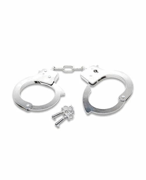 It’s official – you’ve been bad! And now you have to be locked up. Play out all your handcuff, captive and bondage fantasies with these official-looking handcuffs. The polished finish and deluxe keys add to the realistic look and feel of this adult toy. Includes safety latch release. Time to lock ’em up!