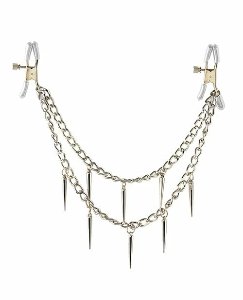 Make your nipples perk with pleasure with these Pipedream Rock Hard Nipple Clamps. Made with durable metal clips and covered in soft rubber liners, these clamps are perfect for beginners and fetish enthusiasts alike. The amount of pressure you apply to the nipple is adjustable by turning the screw, while the two chains give you subtle stimulation with each movement. Made of metal and rubber.