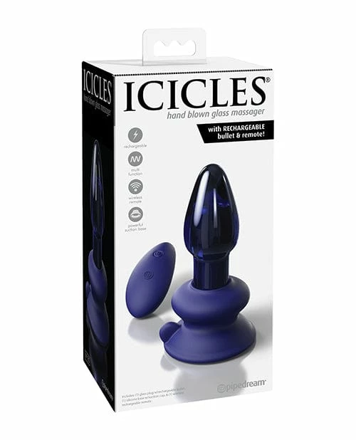 Pipedream Products Icicles No. 85 Hand Blown Glass Vibrating Butt Plug With Remote – Blue