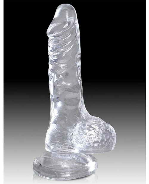 Clearly the best! Created to heighten your pleasure experience, this specially crafted formula is virtually odorless, non-sticky, and easy to clean. King Cock Clear combines a translucent dildo with a realistic cock design. The luminous clarity and lifelike form will fulfill all your fantasies! With its flexible shaft, detailed veins, and defined head, King Cock Clear will engage your senses visually and physically. The powerful suction cup base sticks to nearly any flat surface and makes every dildo harness compatible.