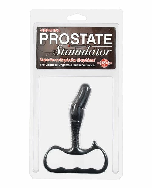 Discover your male G-spot and experience explosive, full-body orgasms with the Vibrating Prostate Stimulator. Perfect for beginners to the world of prostate stimulation, this first-timer anal vibe is cleverly curved to hit the right spot every time. The smooth, non-porous tip is angled to gently massage your prostate, while the nubby tip on the handle simultaneously presses against the perineum (the magic spot between the scrotum and the anus). Use plenty of Moist lube for an extra wet, extra wild encounter. Best of all, cleanup is a snap after the fun with Toy Cleaner and warm water. Takes three LR 44 cell batteries, sold separately.