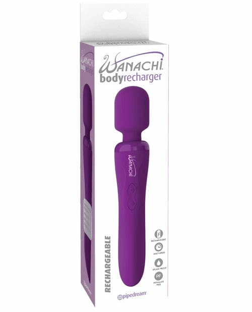 Enjoy soothing vibrations anywhere you go and give your aching muscles the revitalizing recharge they deserve! The Wanachi Body Recharger is the first Wanachi body massager with a velvety-soft head and neck made entirely out of Elite silicone and operated by a powerful rechargeable motor. With the splash-proof Wanachi Body Recharger, you can delight in knowing that you’ll never have to replace another set of batteries again, and never worry about messy cords getting in the way of fun! With ten whisper-quiet vibration patterns to choose from, you can go from a flutter to a throb in seconds. Hold the power button down for three seconds to power on, then push the function button to cycle through 3 intense speeds and 7 thrilling pulsation patterns. The multiple functions let you choose your favorite setting to relieve tension and reduce muscle fatigue. Using a premium, lithium-powered Japanese motor, the Wanachi Body Recharger delivers, deep, rumbly vibrations unlike any other compact cordless massager on the market. This lightweight massager is ergonomically shaped for extra comfort and covered in body-safe, phthalate-free Elite silicone, making it incredibly smooth to the touch. The flexible silicone head and neck bends and conforms to your body contours, allowing you to hit the right spot every time. Whether you’re looking to relieve tension, reduce muscle fatigue, or enjoy a luxurious intimate encounter with or without a partner, this irresistible massager it the perfect choice. Overall Length: 9″ (23 cm), Head Width: 1.7″ (4.2 cm). From Pipedream.