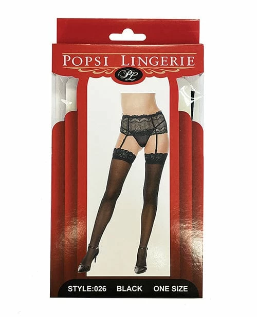 Popsi Lingerie Silicone Lace Top Thigh High Black O-s
