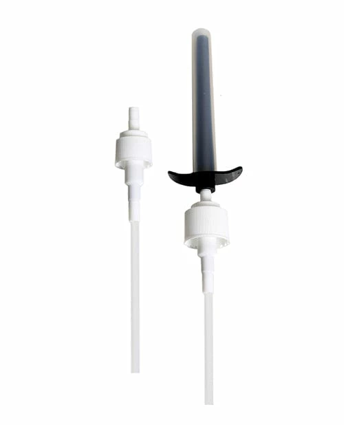 The 4″ (10cm) interchangeable plastic injector comes with a small and large lube