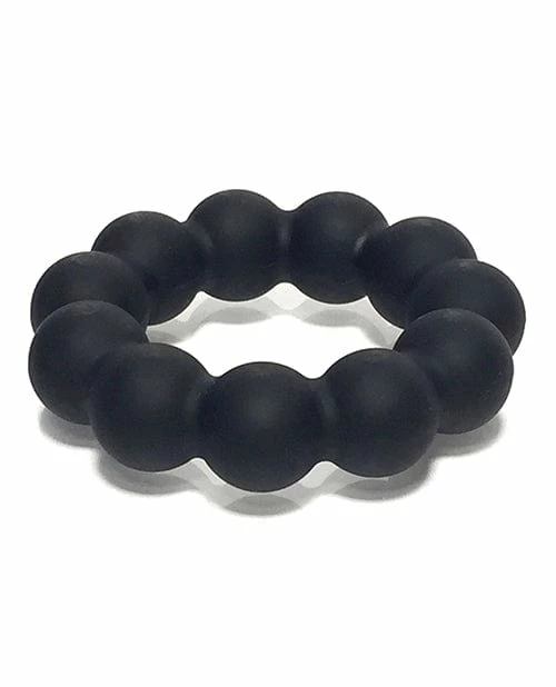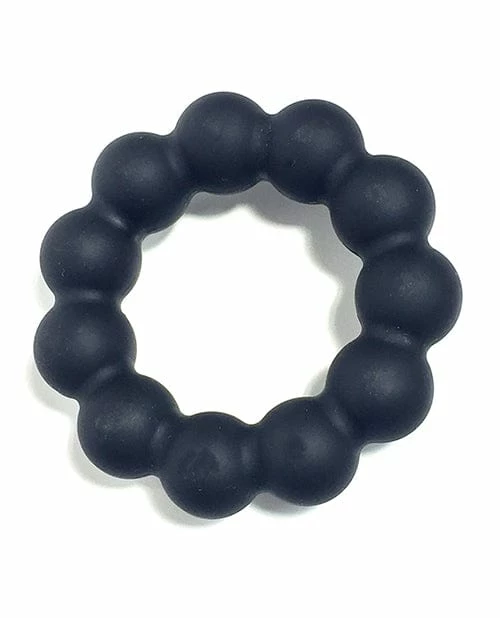 Meatballz soft touch silicone stimulation ring. With multiple beads. Meatballz creates extra stimulation points, keeping you harder longer. Warms to your body temperature for many hours of comfortable wear and play. 2X super stretch, won’t roll or tug at hair. Inner diameter 1.75 inches, outer diameter: 3 inches.