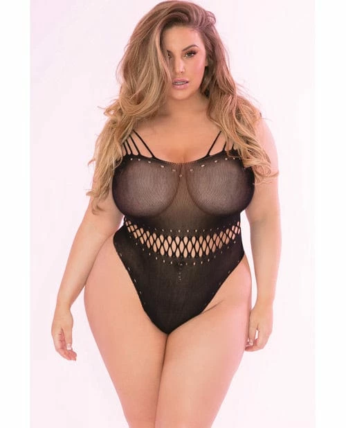Bodysuits have come a long way, and this black, opaque AND shredded bodysuit has attitude written all over it! A low, dip back and thong fit is super alluring and the front cutout details around the waist breaks up this one piece perfectly for layering. Hand wash cold, line dry. Do not bleach, iron or dry clean. 93% Nylon, 7% Spandex. From Pink Lipstick.