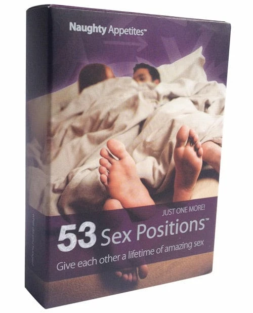 The Naughty Appetites 53 Sex Positions Card Game. Give each other a lifetime of amazing sex. We know you love sex. In fact, you’re probably even having great sex. But who doesn’t want to improve their game in and out of bed and take it to a whole new level? 53 Sex Positions – just one more, is the only deck of cards created to intensify love making and ignite a lifetime of amazing sex like never before! Each card includes an illustration with simple step by step instructions. We’ve even rated each position, but we’ll let you be the ultimate judge.