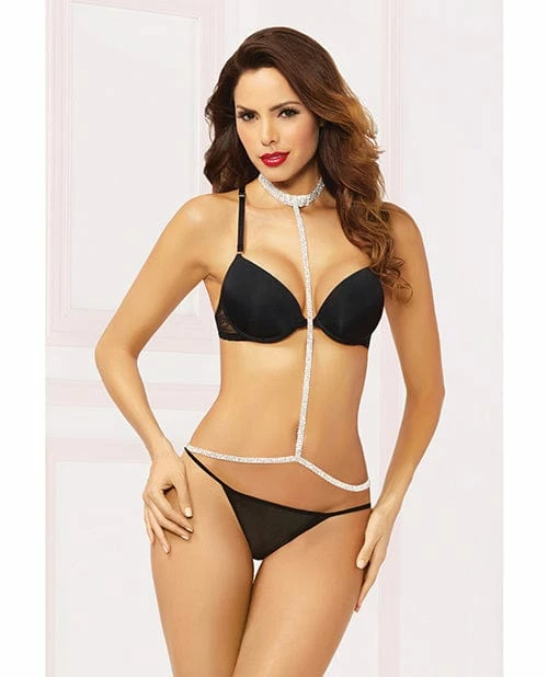 Seven ’til Midnight Lingerie Rhinestone Belly Chain With Attached Choker Silver One Size Fits Most
