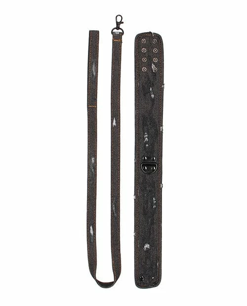 Shots America Kink & BDSM Shots Ouch Denim Collar With Leash