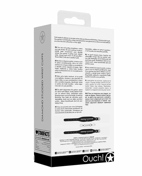 Shots America Kink & BDSM Shots Ouch Diamond Studded Wrist Cuffs – Black